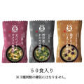 山吹味噌を使用したこだわりのフリーズドライ味噌汁を、50食詰め合わせてお届けいたします。(3種同数の梱包とはなりませんのでご了承ください。)