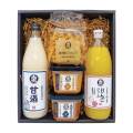 | 内容量 | コクとかおり 500g×1個 大寒仕込み 500g×1個 ふじりんごジュース 1リットル×1本 甘酒 900ml×1本 味噌かりんとう 140g×1袋 |